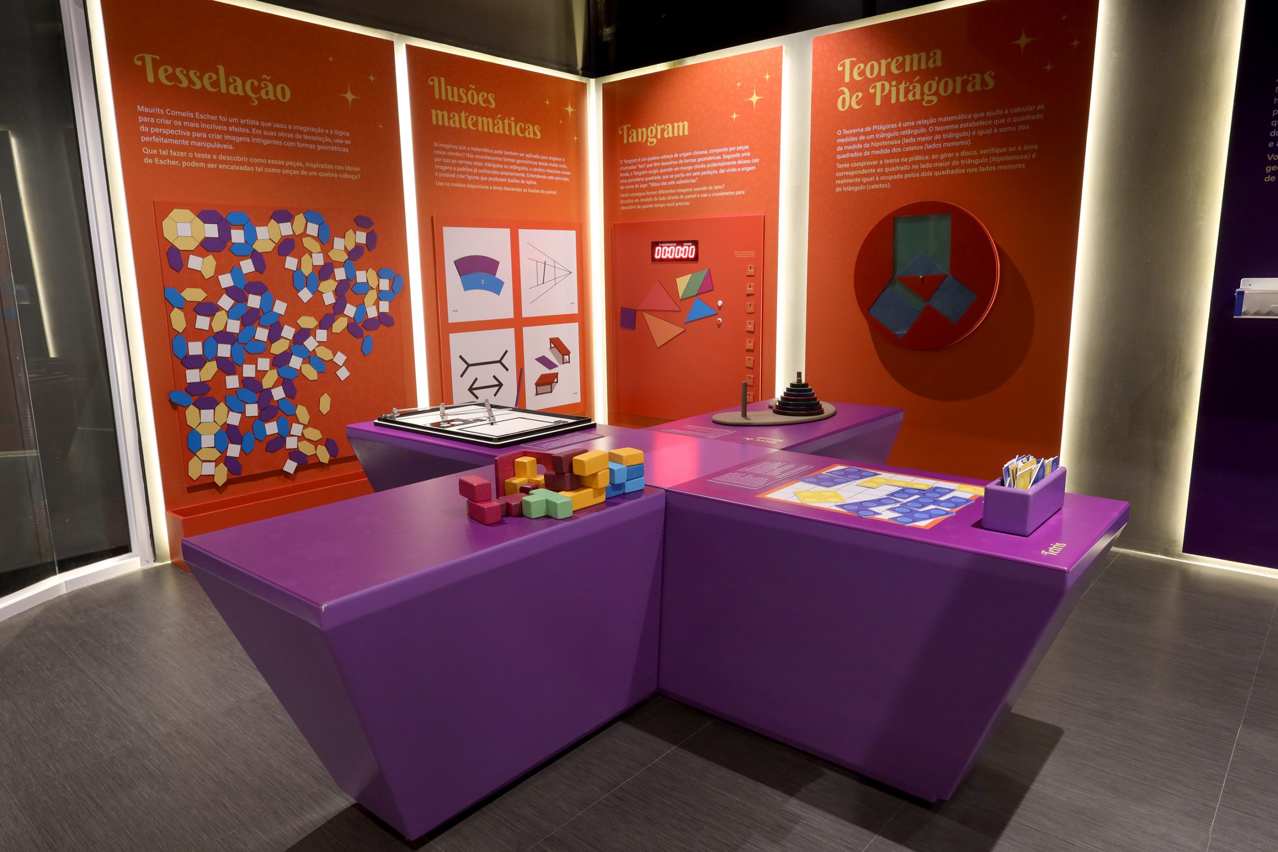 Esta exposição possui diversos jogos e instalações interativas para descobrir e aprender sobre a matemática e sua relação com a natureza e o cotidiano. Nela, é possível jogar, brincar e interagir com cada instalação, se aventurando em novos desafios.