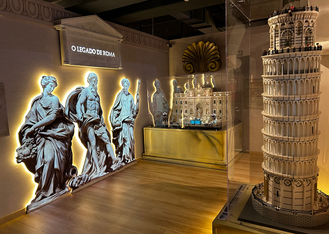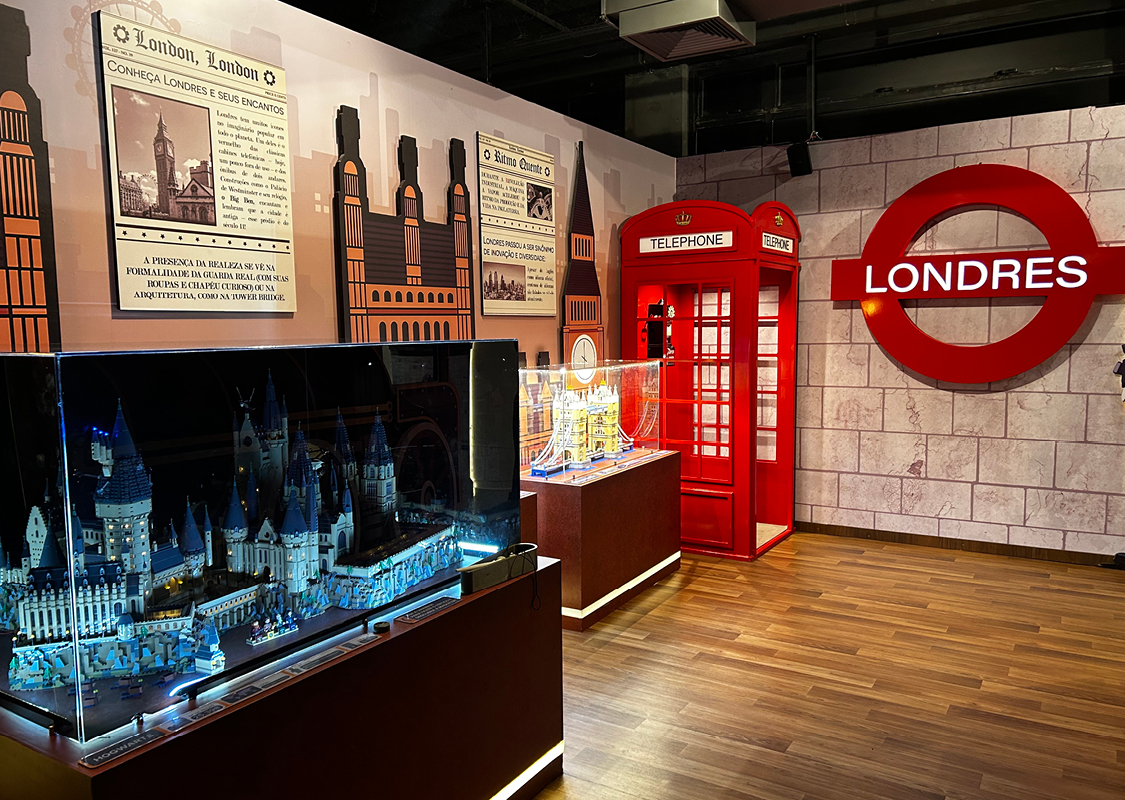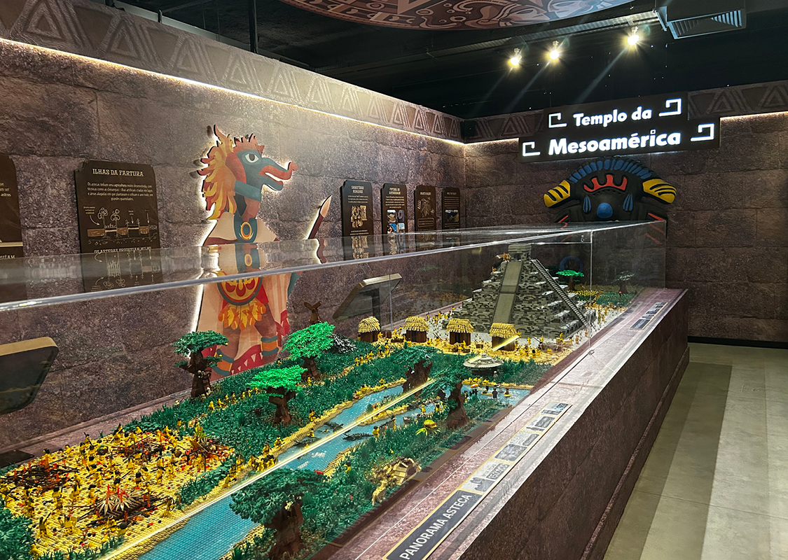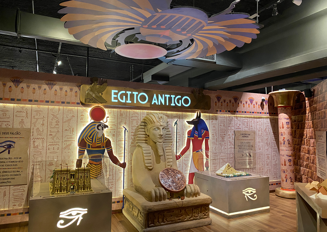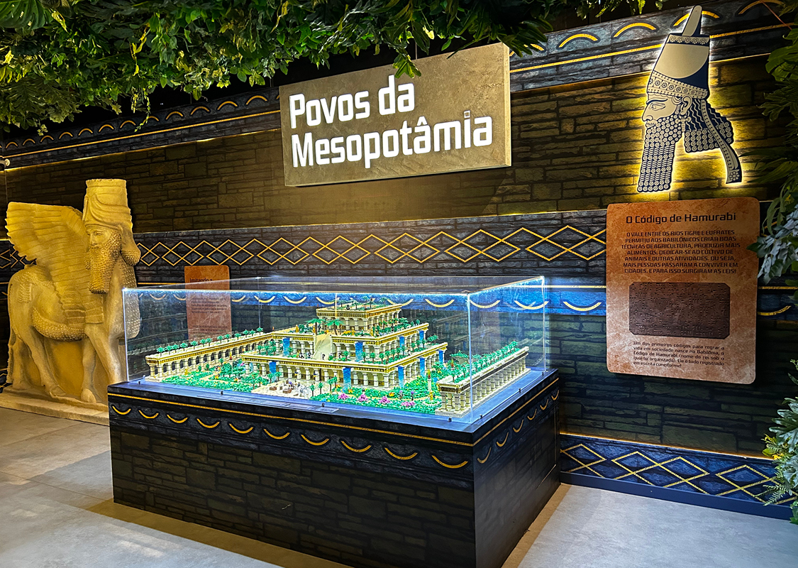 Uma Jornada pelo tempo com blocos de montar. Prepare-se para uma viagem épica através das grandes Eras da humanidade. Com mais de 1 milhão de peças de blocos de montar, esta é a maior exposição do Museu da Imaginação, ocupando 600m². Você será transportado através de 17 salas que representam seis Eras distintas: Antiga, Clássica, Medieval, Moderna, Contemporânea e Imaginação. A viagem começa em uma “Máquina do Tempo”, um simulador 3D pilotado pelo divertido Capitão Heródoto. A partir daí, a imersão é completa com maquetes monumentais de locais icônicos como o Templo de Hórus, a Pirâmide de Gizé, os Jardins Suspensos da Babilônia, o Coliseu, a Catedral de Notre Dame, a Torre Eiffel e até mesmo o Titanic e o MASP. Cada Era é contextualizada, com painéis explicativos e jogos educativos que mesclam curiosidades históricas com elementos de cultura, arte e arquitetura.